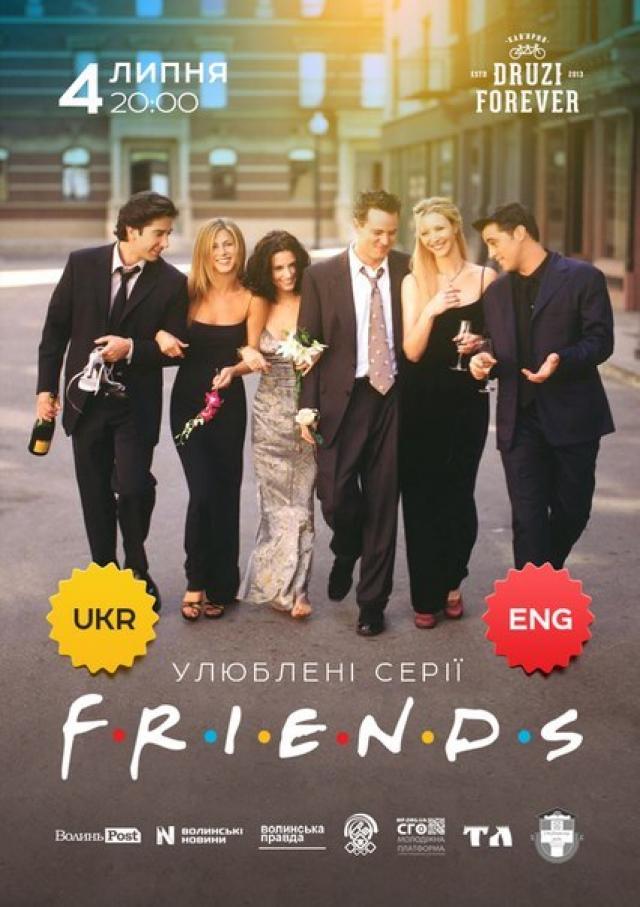 Перегляд улюблених серій «Friends» в оригіналі та з українським перекладом. Початок о 20:00.