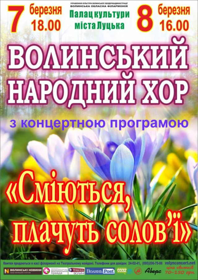 Концерт Волинського хору «Сміються, плачуть солов'ї» у Палаці культури міста Луцька | 7-8 березня