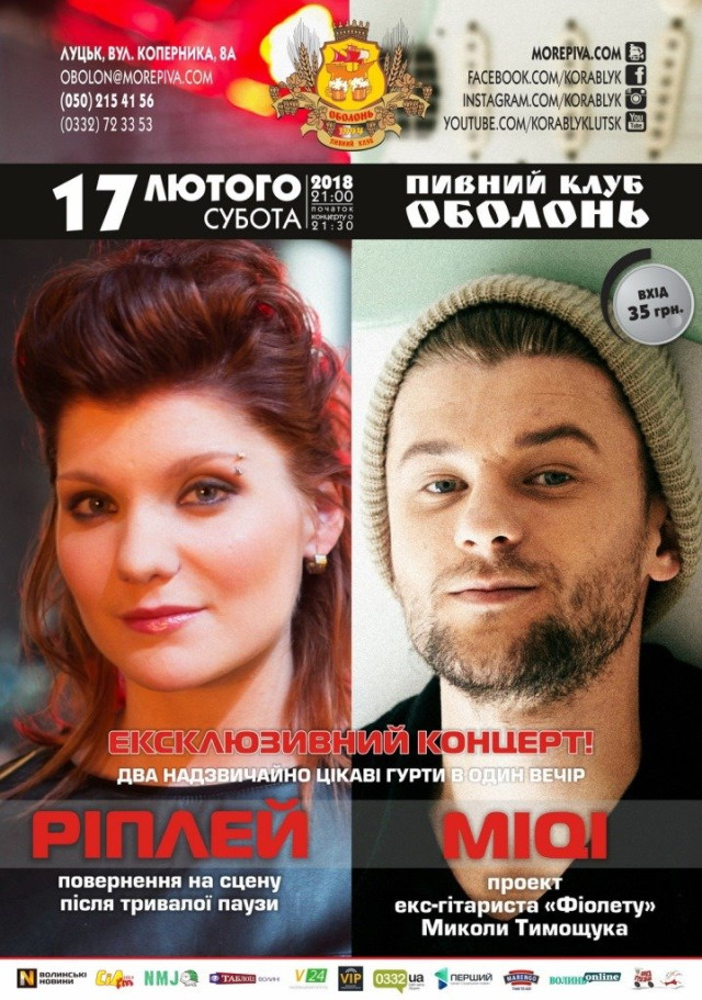 Виступ гуртів «Ріплей» та «MIQI» у пивному клубі «Оболонь» | 17 лютого