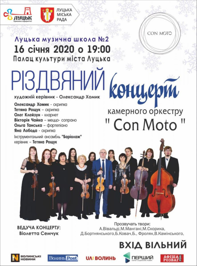 Ритмотека в пивному клубі «Оболонь» | 10 січняІсторія успіху: Андрій Котищук про сім'ю, бізнес, життя в Молодіжному центрі Волині | 10 січняНоворічно-різдвяний концерт «І сталось диво...» у Палаці культури міста Луцька | 10 січняPROкачай свою суперсилу - WOW:ранок у Ring Coffee | 10 січняЛекція «Що ви не знали про вакцинацію» у РЦ «Промінь» | 10 січняРіздвяні свята з Волинським народним хором у Волинському обласному академічному музично-драматичному театрі імені Тараса Шевченка | 10, 15, 16 січняГурт «ЕЛЕКТРОМЕД» + «ДЯДЯ ВОВА» в пивному клубі «Оболонь» | 11 січняРіздвяна ніч у Волинському обласному академічному музично-драматичному театрі імені Тараса Шевченка | 11 січняОлексій Лазарєв & Руслана Моклиця в клубі «Цитра» | 11 січняЕтнофестиваль «Різдво у Луцьку» на Театральному майдані міста | 11–12 січняВеселий маскарад у Волинському академічному обласному театрі ляльок | 12 січняРіздвяний концерт у Волинському обласному академічному музично-драматичному театрі імені Тараса Шевченка | 12, 14 січняЛатино танцульки в пивному клубі «Оболонь» | 12 січняФріланс: інструкція по застосуванню в Молодіжному центрі Волині | 12 січняНоворічна казка в РЦ «Промінь» | 12 січняІрина Федишин у Волинському обласному академічному музично-драматичному театрі імені Тараса Шевченка | 13 січняВечорниці на Василя у Рестпарку | 14 січняТеплий акустичний різдвяний вертеп ТНМК у Палаці культури міста Луцька | 15 січняРіздвяний концерт камерного оркестру «Con Moto» у Палаці культури міста Луцька | 16 січня
