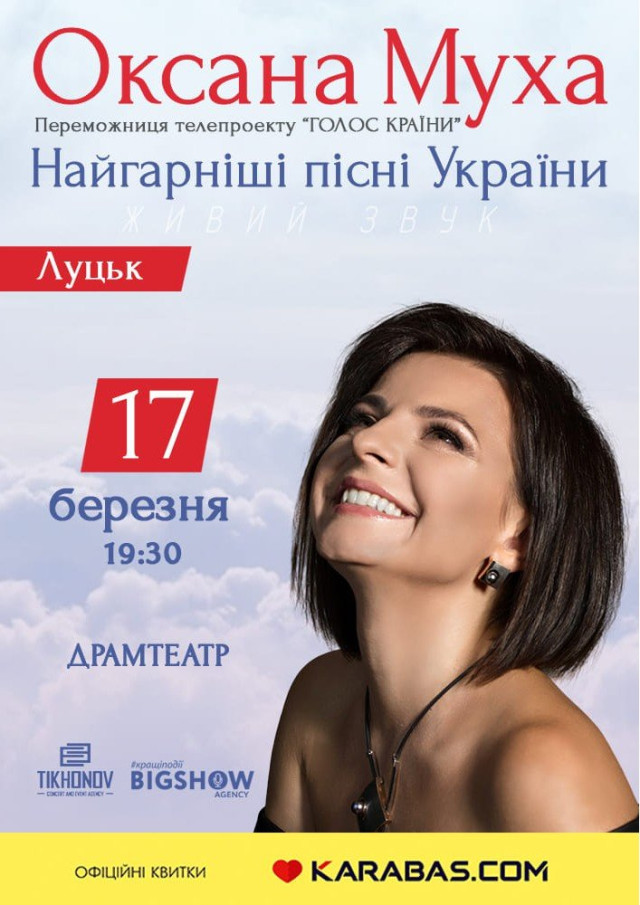 Вистава «Шельменко-денщик» у Волинському обласному музично-драматичному театрі імені Тараса Шевченка | 11 березняКонцерт «І пісня від серця поллється» у Волинському обласному музично-драматичному театрі імені Тараса Шевченка | 12 березняРетро-фольк квартет «Стара шухляда» у пивному клубі «Майдан» | 12 березняВистава «Обережно – жінки» у Волинському обласному музично-драматичному театрі імені Тараса Шевченка | 12 березня«Нарешті п’ятниця» в пивному клубі «Оболонь» | 12 березняЖивопис для дорослих пастеллю «Іриси» в художній студії «Барва» | 12 березняГурт «Чорні черешні» в пивному клубі «Майдан» | 12 березняВистава «Номер 13 (Неймовірні пригоди в готелі класу LUX)» у Волинському обласному музично-драматичному театрі імені Тараса Шевченка | 13 березняМасляна фест у Жидичині | 13 березняВистава «Вінні Пух і всі, всі, всі…» у Волинському обласному театрі ляльок | 13 березняВистава «Золотоволоска» у Волинському обласному театрі ляльок | 14 березняБалетна вистава «Кармен-Сюїта» у Волинському обласному музично-драматичному театрі імені Тараса Шевченка | 14 березняВистава «Попелюшка» у Волинському обласному музично-драматичному театрі імені Тараса Шевченка | 14 березняРоман Вознюк у пивному клубі «Оболонь» | 14 березняЗустріч з мисткинею про креативну роботу «Шлях до творчої професії» | 15 березняОксана Муха у Волинському обласному музично-драматичному театрі імені Тараса Шевченка | 17 березняВистава «Фрекен Жюлі» у Волинському обласному музично-драматичному театрі імені Тараса Шевченка | 19 березня