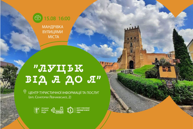Тематичні зустрічі з відомими лучанами «Як збудувати особистий бренд?» у Молодіжному центрі Волині | 13 серпняНавчання «Емоційний інтелект та особисті стратегії соціальної взаємодії в кризовий період» у Consulting Center | 13 серпняЮрій Поліщук у пивному клубі «Майдан» | 14 серпняМандрівка вулицями міста «Луцьк від А до Я» від Центру туристичної інформації та послуг» | 15 серпняЛюди-будинки. Нова екскурсія covid-підпілля. Зустріч на Театральному майдані біля пам’ятника Лесі Українці | 15, 16 серпняМіжнародний день молоді в центральному парку імені Лесі Українки | 16 серпняНіна та Марі. Акустика в пивному клубі «Оболонь» | 16 серпняПрогулянка на катері «На одній хвилі» від будинку луцького скульптора Миколи Голованя | 16 серпняАкустичний вечір до дня народження Андрія Кузьменка в рекреаційній зоні CITY PARK | 17 серпняШкола експортера у Волинській торгово-промисловій палаті | 17-18 серпняТеатр «Чорний квадрат» у РЦ «Промінь» | 19 серпняТренінг «Чому ТОБІ не обійтися без критичного мислення» у Молодіжному центрі Волині | 20 серпня