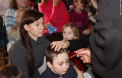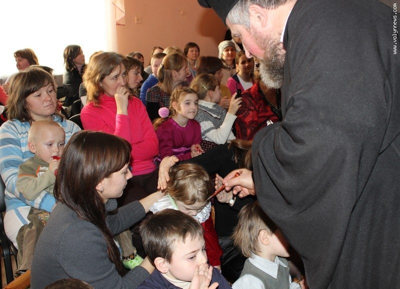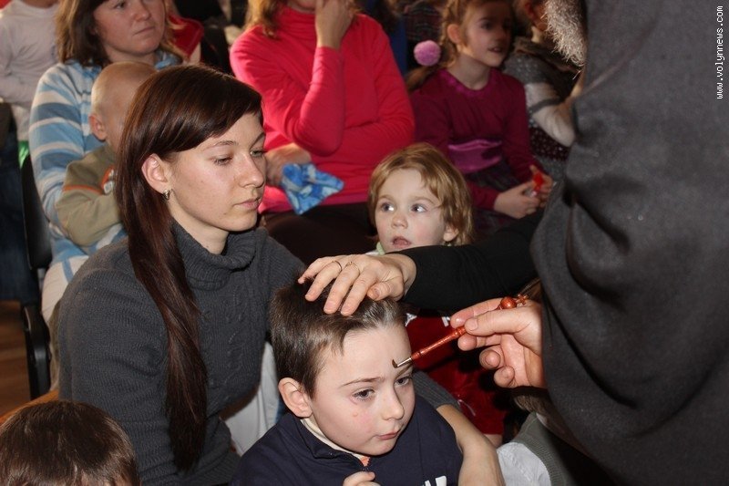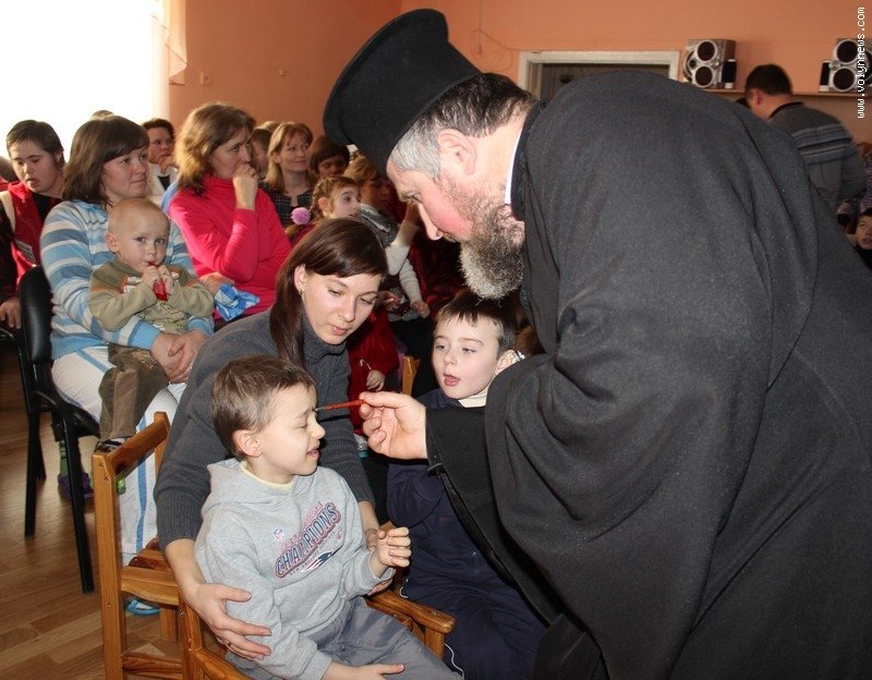 Свято для дітей розпочалося з виступу настоятеля храму Благовіщення Пресвятої Богородиці отця Миколая, який трохи розповів про святого Миколая та пообіцяв молитися за здоров'я хворих дітей. А згодом він провів церемонію миропомазання та зауважив, що після неї обов'язково хтось зцілиться.