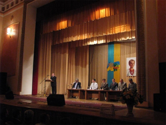 Зібрання у Народному домі «Просвіта» розпочалося з виконання державного гімну України. Опісля голова Луцької міської партійної організації Всеукраїнського об’єднання «Батьківщина» Григорій Пустовіт своєю промовою відкрив захід. Пан Пустовіт коротко охарактеризував діяльність фракції БЮТ у Луцькій міськраді. Крім того, Григорій Пустовіт вручив квіти партійному активісту Надії Квашук, у якої був день народження.