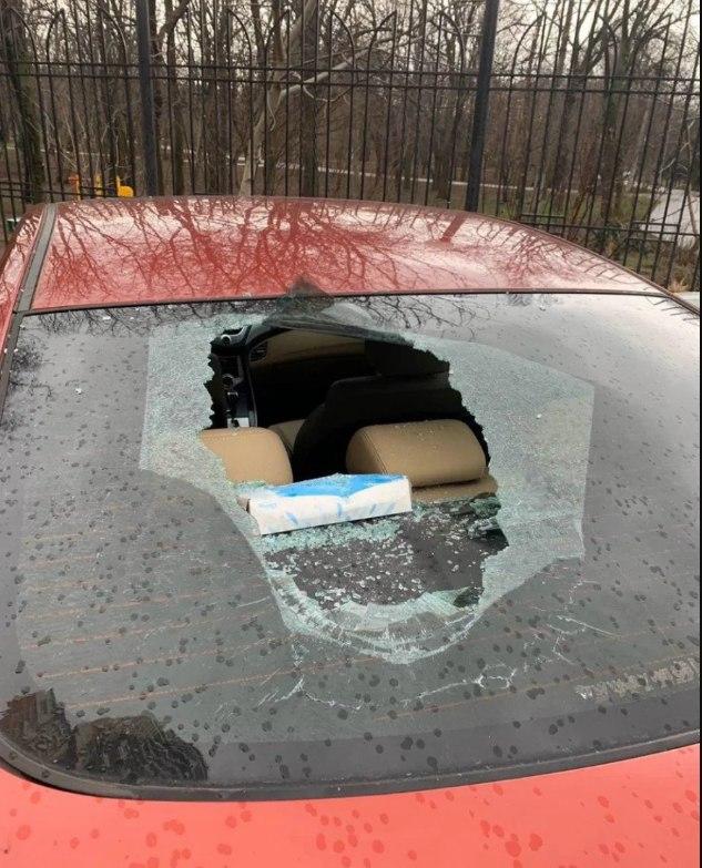 Сильний вітер зніс будівельні матеріали з даху будинку № 2 по Маразліївській вулиці. Алюмінієві труби пошкодили припарковані під будинком автомобілі. Більше за всіх дісталося позашляховику BMW – металеві вироби проткнули дах і лобове скло. Ніхто не постраждав.