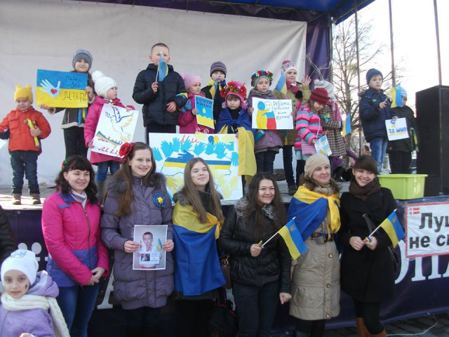 На Театральному майдані у Луцьку 8 Березня відбувся дитячий флешмоб в рамках всеукраїнської акції «Майбутнє проти війни». Акція відбулася одночасно у багатьох містах України, повідомили організатори заходу.