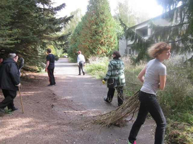 Волинські самооборонцівці та інші волонтери провели у селі Журавичі Ківерційського району цілісінький день. Саме там активісти долучилися до очищення прибудинкової території санаторію «Журавичі» або «Журавка», де є відоме на Волині джерело іонізованої родонової води. Про це повідомили у прес-службі активістів.