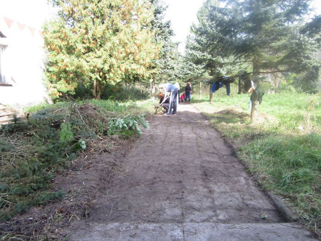 Для початку вирішили прибрати територію, тож до цього залучилися самооборонівці та активісти Жіночої сотні. За один день волонтери прибрали сміття з території, окультурили дерева, що ростуть по центральній доріжці, а також відновили бруківку на алеї, що веде до самого джерела.
