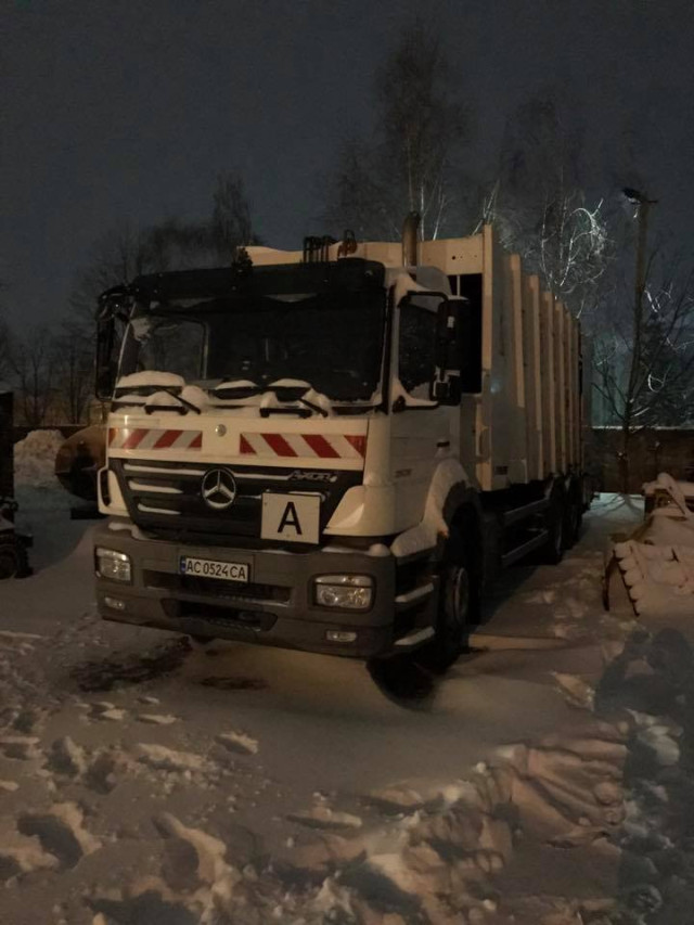 У своєму Фейсбуці Ігор Поліщук написав, що це два найбільші в Луцьку 25-кубові сміттєвози Mercedes Axor.