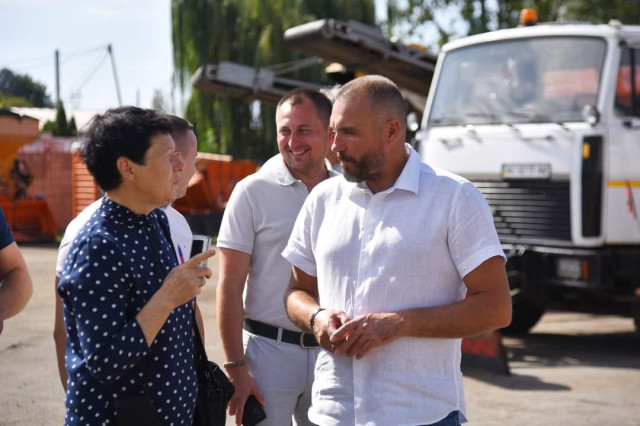 Насамперед експертів ознайомили з роботою ЛСКАП "Луцькспецкомунтранс" на території підприємства, де заступник директора Назарій Івасечко та начальник господарського відділу Тарас Ворон розповіли та показали техніку, гаражі, ремонтні бокси, устаткування.
