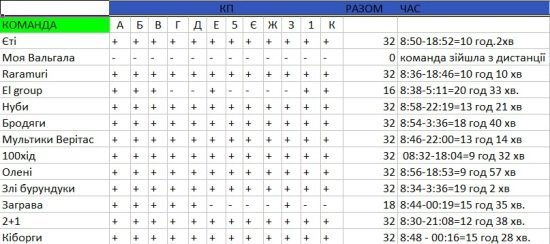 У першій категорії складності (80 кілометрова дистанція) посіла третє місце команда з Луцька «Тиранозаврики» взявши лише 9 КП за 14 годин 32 хвилини. Друге місце у команди «Сильний Чернігів», яка за 22 години 42 хвилини взяла 12 контрольних пунктів.
