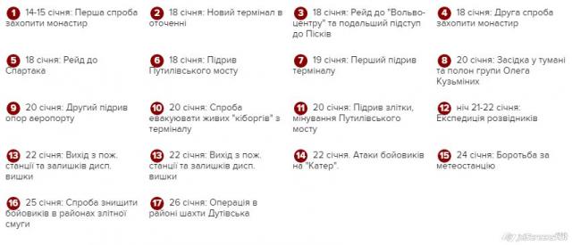 13 січня у результаті обстрілів завалилася диспетчерська вежа, яку зображували на численних мотиваторах і постерах як символ протистояння українських військових.