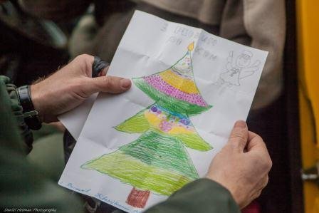 Дитячі малюнки, власноруч виготовлені паперові ялинки, ангелики та новорічні дзвоники зі словами «Дорогий солдате, повертайся живим!» сьогодні повезли волонтери центру «Серце патріота» в зону АТО. Це, напевне, найважливіший вантаж, який доставлять бійцям під час ювілейної – 100-тої поїздки «Серця патріота».