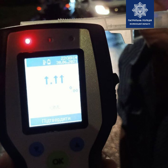 Огляд на визначення стану сп’яніння кермувальник пройшов на місці події у присутності двох свідків. Результат – «стрілки в небо», що становить максимальну позначку на алкотестері – 5 проміле (перевищення у 25 разів).