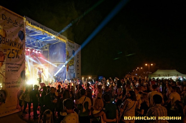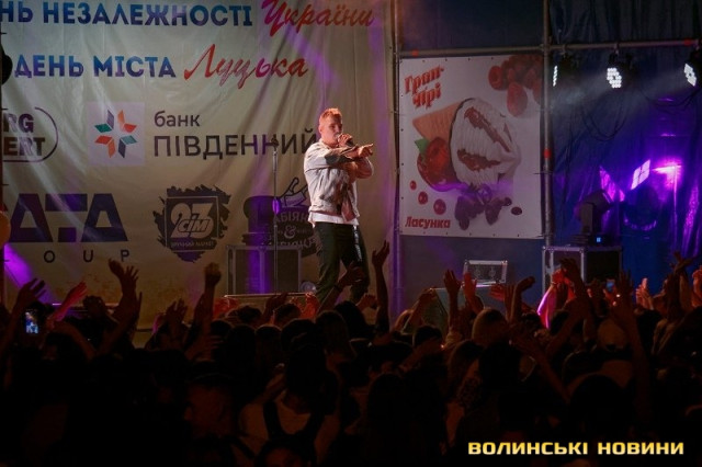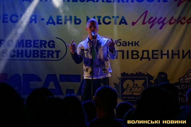 Перш, ніж артист з’явився на сцені, до присутніх звернувся директор департаменту сім’ї, молоді та спорту Луцької міської ради Олексій Веремійчик. Він привітав лучан та побажав бути незалежними у серці, душі та фінансово. Олексій Веремійчик підкреслив, що сподівається на проведення усіх наступних міських заходів так, як сьогодні. Адже протягом цілого дня у Луцьку працювало багато різноманітних локацій, на будь-який смак. За тим Олексій Веремійчик оголосив про ще один подарунок для усіх містян — музичний.