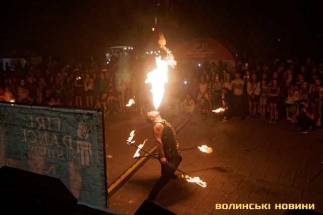Після цього ведучі попросили глядачів звільнити територію біля сцени, адже новий номер обіцяв бути запальним у всіх значеннях цього слова. І справді, вогняне шоу від команди «Fire Dance Show» нікого не залишило байдужим — чого лише варті ефектні подихи вогнем та віртуозне володіння спецінструментами.