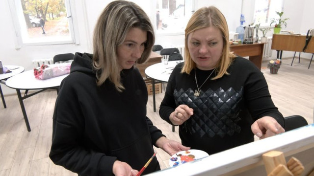 Для жінок такий досвід новий, пензлі та фарби до рук вони взяли вперше, розповіла Суспільному художниця з Нововолинська Олена Киця.