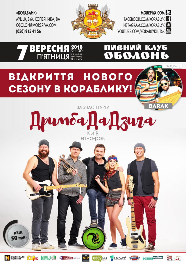 По дорозі до Європи до «Кораблика» завітають чудові "ДримбаДаДзига", які вже не вперше гратимуть на сцені «Оболоні».