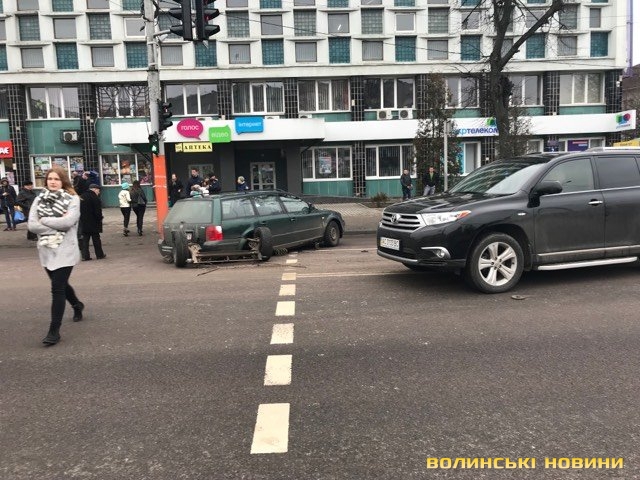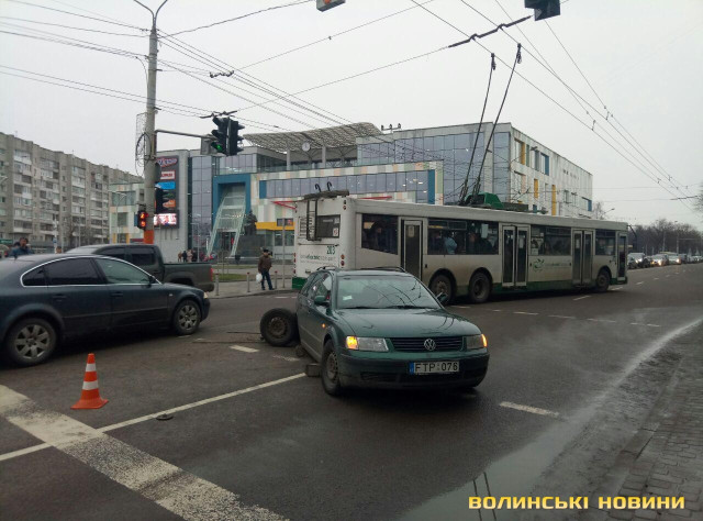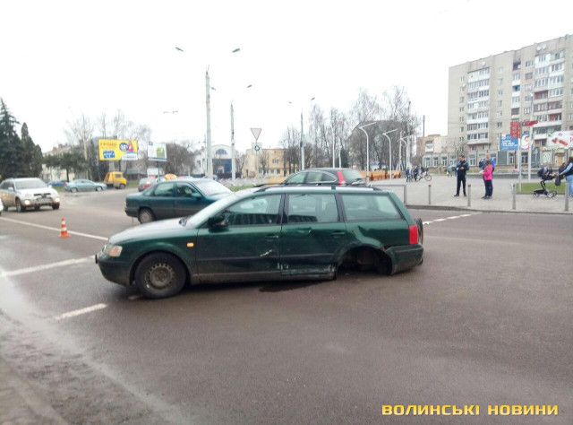 Нагадаємо, сьогодні близько 15 години на вулиці Василя Мойсея зіткнулися "Деу Матіз", "Мерседес та "Фольксваген Пасат". Від удару у Фольксвагена відірвало задні колеса.