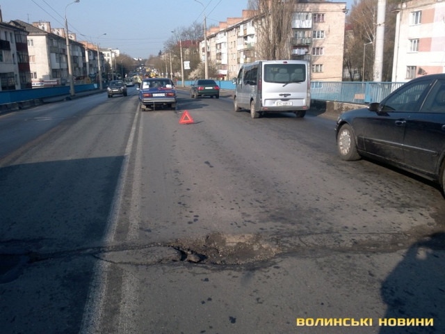 ДТП трапилася сьогодні, 4-го квітня біля дев’ятої ранку по проспекту Перемоги в Луцьку. У тому, що пригода мала місце, водій Опель Астри звинувачує міську владу, яка належним чином не поремонтувала дороги.