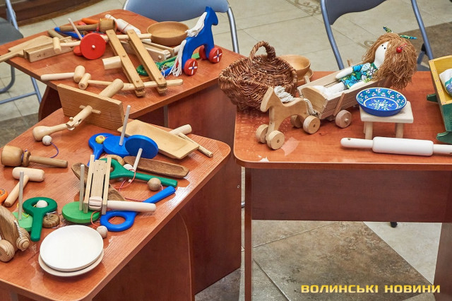 Дзиґа, вуркало, деркач: у Луцьку презентували іграшки часів дитинства Лесі Українки. Фото