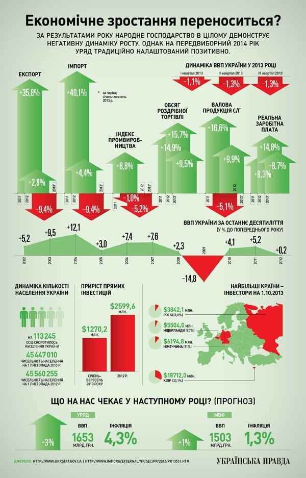 Те ж саме нас очікує у 2014 році. Прогноз зростання ВВП на 3% - це блеф. Для прикладу, МВФ прогнозує зростання ВВП України на 1%. І це дуже оптимістичний погляд на речі.