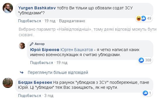 Юрій Бірюков, який був волонтером і радником експрезидента України Петра Порошенка, назвав всіх бійців Збройних сил України, які голосували за Володимира Зеленського, «убл*дками».