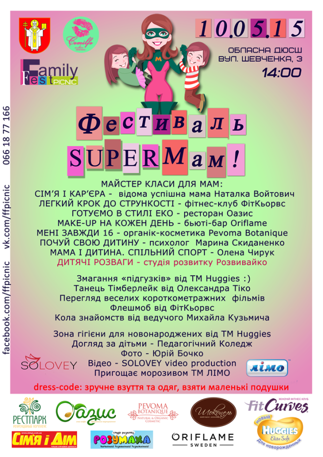 10 травня (неділя) о 14.00 в обласній дитячій юнацькій спортивній школі (вулиця Шевченка, 3) відбудеться перший фестиваль супермам, - повідомляють організатори.