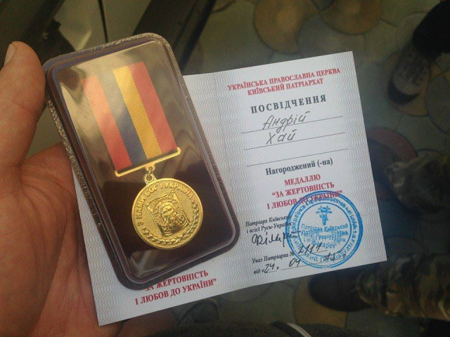 Луцький волонтер Андрій Хай отримав медаль «За жертовність та любов до України» від Патріарха Філарета.