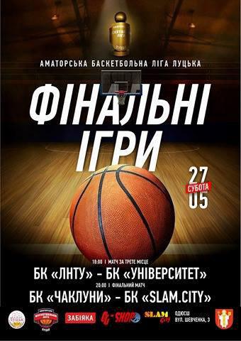 Любителів баскетболу запрошують на фінальні ігри Аматорської баскетбольної ліги Луцька 27 травня.