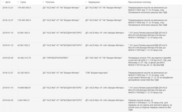 Гроші надходили з казначейського рахунку в Черкаській області на приватний рахунок «Богдан Моторс», відкритий в «Правекс-банку». Невелика частка коштів була перерахована деяким приватним підрядникам. Зокрема ТОВ «Богдан Індустрія», яке також входить в корпорацію «Богдан», отримало 20,3 млн гривень на постачання автомобiлiв Great Wall.
