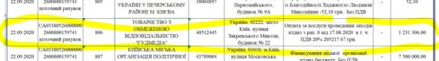Виявилось, що ТОВ «Гудмедіа» отримало 1,23 млн грн за послуги з організації та проведення корпоративних заходів партії «Слуга Народу» та її регіональних організацій організацій.