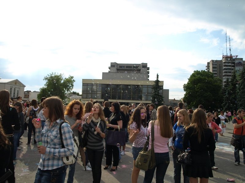 Згадати дитинство на Театральний майдан прийшло чимало юнаків та дівчат різного віку – від 15 до 25 років. О 18.00 вони одночасно почали пускати мильні бульбашки. Далі усі рушили до головного корпусу ВНУ, де й продовжили цю спонтанну акцію. Тут можна було побачити різне причандалля для видування бульбашок. Це були як класичні пляшечки, так і пістолетики, свистки та спеціальне пристосування для вироблення гігантських бульбашок.