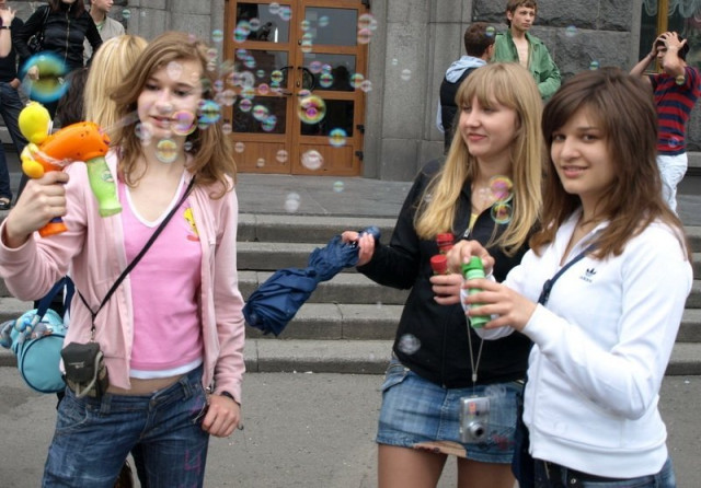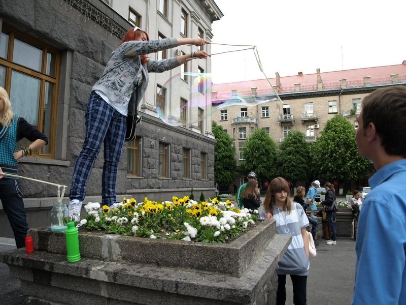 Ввечері у Міжнародний день захисту дітей луцька молодь вирішила повернутись у дитинство. Таким чином було організовано флеш-моб, суть якого полягала у пусканні мильних бульбашок.