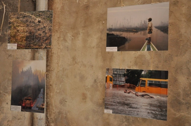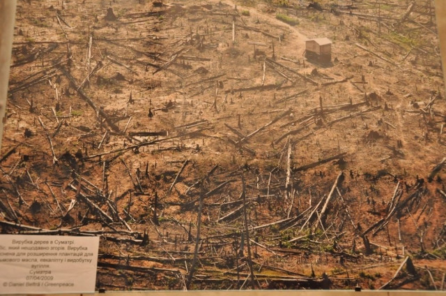 На виставці представлено 15 фотографій закордонних авторів та три – українських. Усі вони відображають екологічні проблеми та кліматичні зміни, природні стихії. Є світлини, на яких зображені вирубані ліси Суматри.