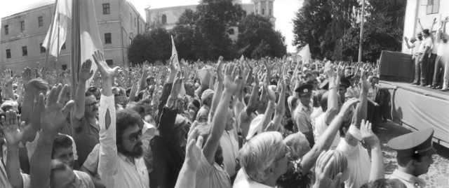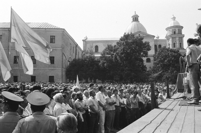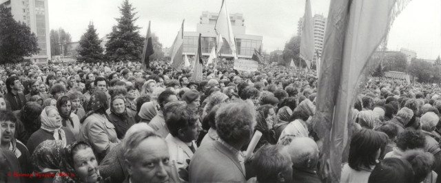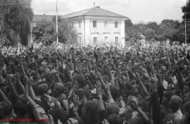 Фотоапарат плівочний чи цифровий – це таке, що не має значення, скажу просто: найпершим шоком була слайдова плівка у 1980-ті роки. У мене є дуже багато слайдів. Я художник та люблю колір, а колір тоді можна було отримати тільки на орвохромі, на слайдах, які ми не могли надрукувати. Слава Богу, мені вистачило глузду це все зберегти, взяти в рамки. Я зараз іноді в шоці, не розумію, як я це зняв. Тоді був чудовий фотоапарат «Київ-17», ця камера коштувала 485 рублів, а потім здешевшала до 140, оскільки камеру вартістю в три зарплати ніхто не купував. Я її купив – колосальна камера. Тоді випускали хороші фотоапарати на рівні Nikon, байонет від якого офіційно купили для камер «Київ-17» та «Київ-19». Робили хорошу оптику, якою я потім фотографував перші рухівські мітинги. Була камера «Горизонт», яку заборонили випускати наприкінці 1970-их, тому що це шпигунська камера, вона робила панораму на 180 градусів. Я періодично публікую фото з цієї камери, вони інші, тому у мене є ностальгія за нею.