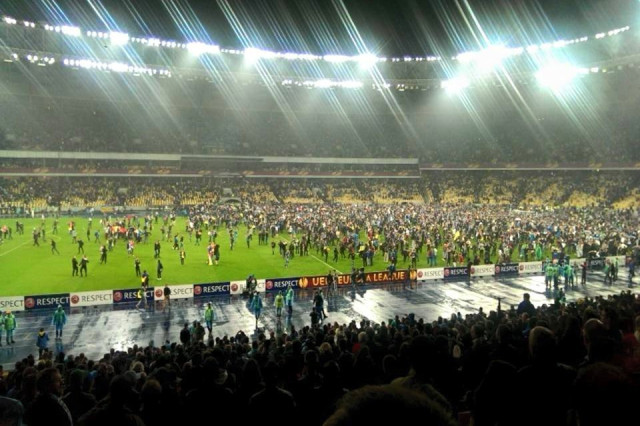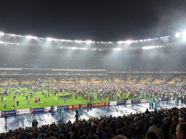 Після фінального свистка тисячі фанів вибігли на поле “Олімпійського”.