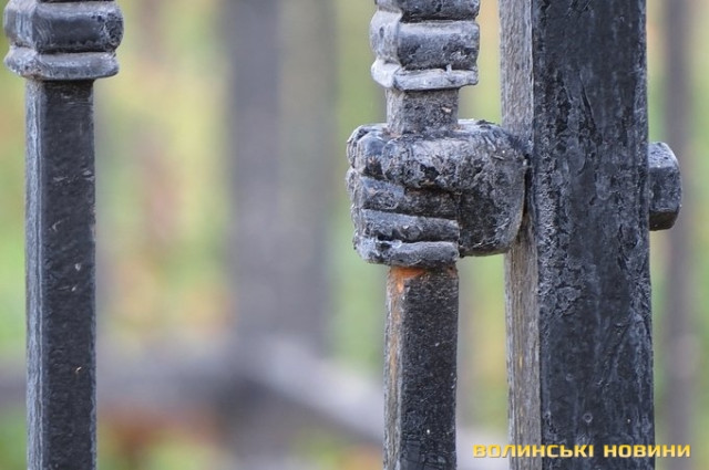 Деякі парканчики виконані в готичному стилі. Інші мають гарний кований візерунок. На одному з парканчиків, які чудом вбереглися, знайдемо мініатюрний кований людський кулачок (фото нижче, – ВН), який підтримує дверцята. На інших бачимо родові герби або інші символи, які з тих чи інших причин помістили автори парканів. На жаль, їхні прізвища поки невідомі.
