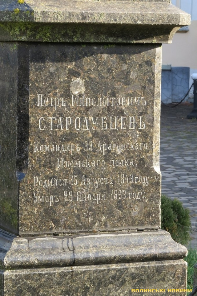 Гадон Софія Сергіївна (1830-1884). Дружина Сергія Гадона.Десницький Іван Степанович (1838-1888). Голова Луцького окружного суду, статський радник, батько Катерини Десницької, яка стала сіамською принцесою На Пхітсанулок.Ільницький Ян. Працівник Луцького окружного суду, нотаріус.Каменоградський Павло Олександрович (1838-1902). Генерал-лейтенант, командир 2 бригади у складі 11 піхотної дивізії, яка базувалася в Луцьку.Коленко Володимир Володимирович (1892-1919). Командир кінної батареї, син великого землевласника Володимира Коленка.Панютін Всеволод Федорович (1833-1895). Генерал-лейтенант, герой Російсько-турецької війни 1877-1878 років, георгіївський кавалер. Командир 11 піхотної дивізії, яка базувалася в Луцьку. Голова Луцького братства, ініціював виготовлення для Луцька копії чудотворної ікони Іверської Богородиці.