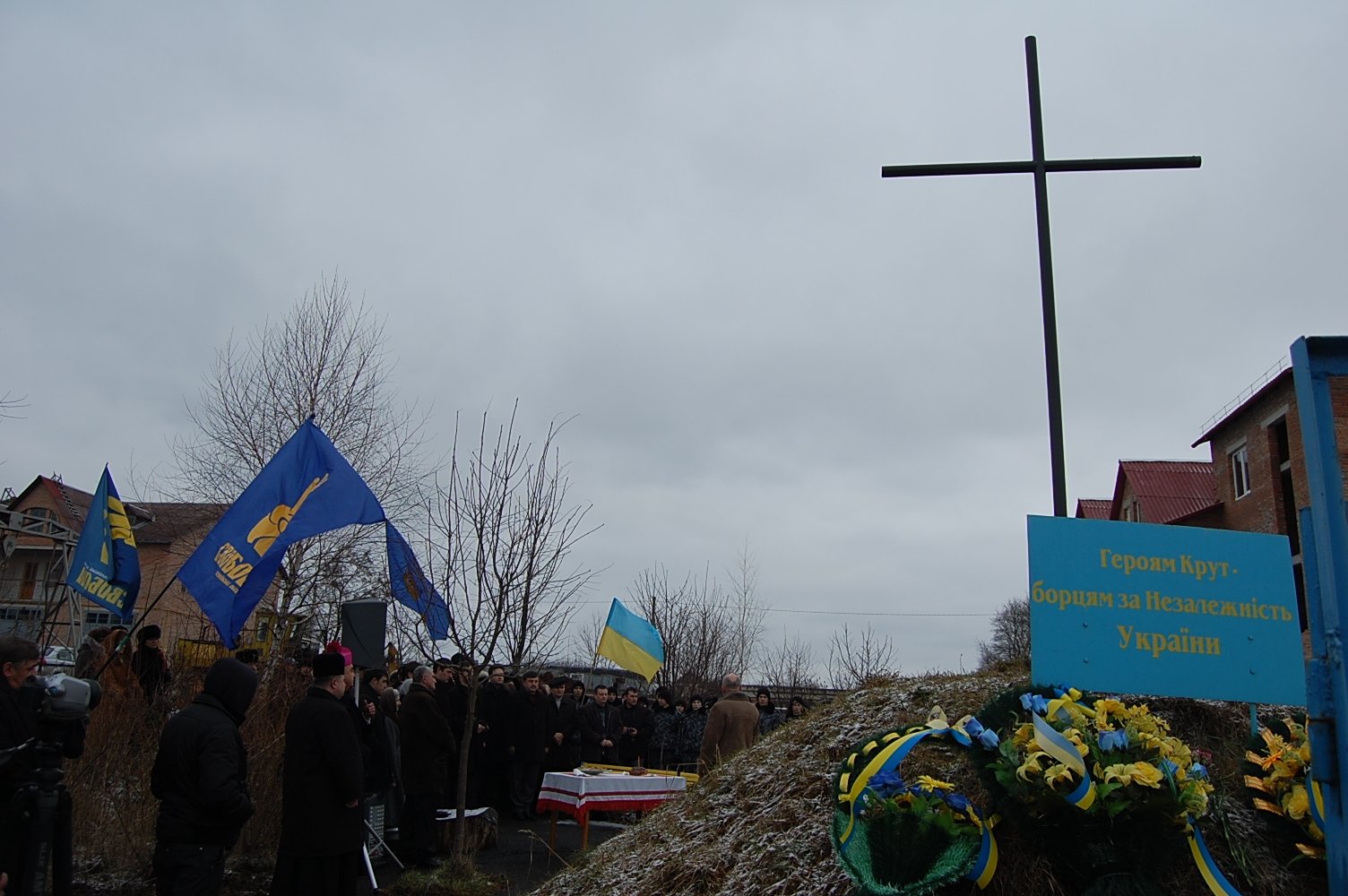 Православні священики відслужили панахиду за українськими студентами, гімназистами, які у 1918 році загинули під залізничною станцією Крути. Після цього представники міської та обласної влади поклали вінки до пам’ятного хреста Героям Крут.