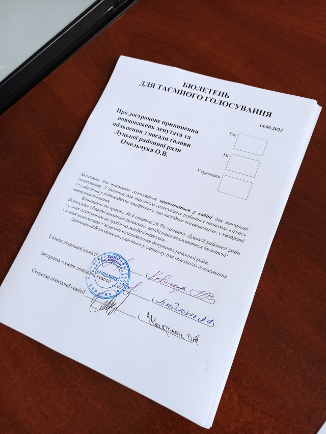 Згідно законодавства та Регламенту Луцької районної ради, голосування відбулося таємно. За результатами підрахунків лічильної комісії, «за» проголосувало 38 депутатів, «проти» – 0, «утрималось» – 0.