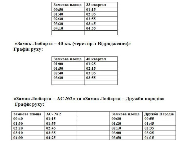 Графік руху маршруток під час «Ночі в Луцькому замку»