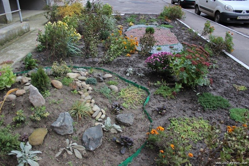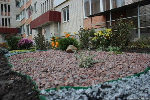 Як розповів Давидюк, таке оновлення будинків спонукало мешканців облагородити клумби. Так, мешканці будинку на проспекті Соборності, 28 висадили понад 30 сортів квітів і перетворили двір на своєрідний ботанічний сад. Ще й додали елементи ландшафтного дизайну.