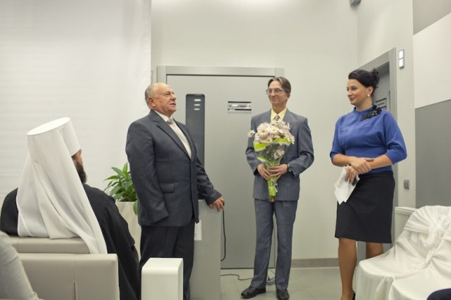 Щоб відзначити випуск сувенірно-колекційної монети, до клініки завітали також голова правління Волинської обласної організації УТОС Юрій Симончук та начальник управління охорони здоров’я Луцької міської ради Федір Кошель. Вони подякували працівникам Центру хірургії ока і його головному лікарю Тетяні Єремеєвій, зокрема, за якісну медичну допомогу людям із вадами зору.