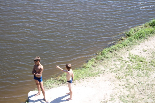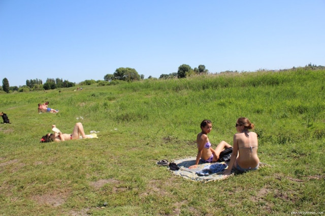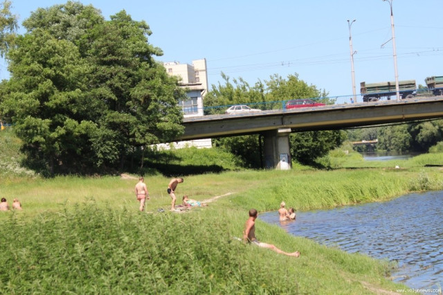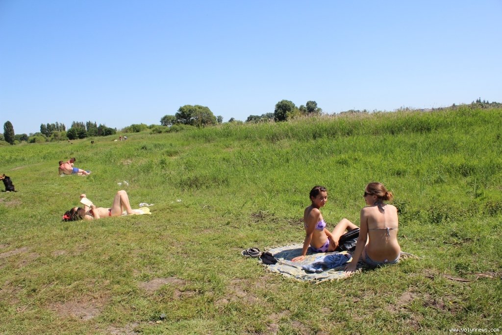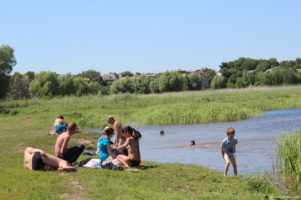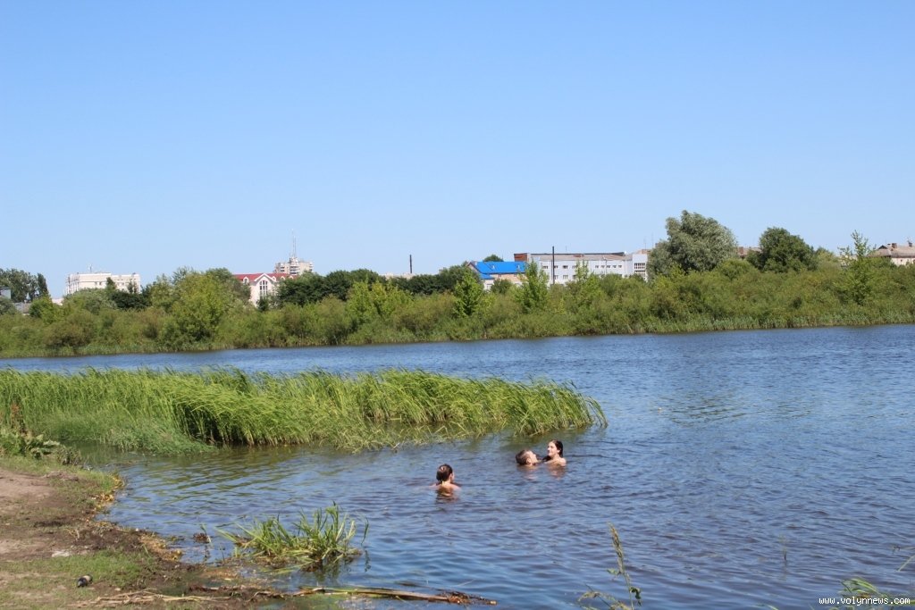 Спека змушує лучан шукати захисту від палючого сонця на берегах водойм.