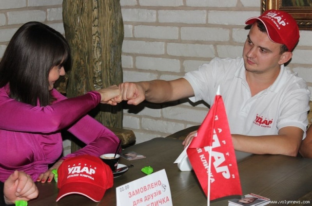 Члени та прихильники партії «УДАР (Український Демократичний Альянс за Реформи) Віталія Кличка» організували в Луцьку дві імпровізовані фан-зони для перегляду боксерського поєдинку між лідером політичної сили Віталієм Кличком та німцем Мануелем Чаррем.