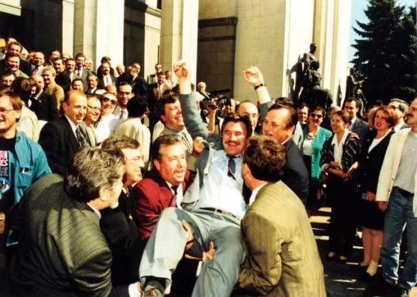 28 червня 1996 року лишилось на фото святковим і піднесеним, не дивлячись на довгі години безперервної роботи. У ніч з 27 на 28 червня 1996 року, яка отримала назву конституційної, депутати Верховної Ради прийняли Основний закон України.