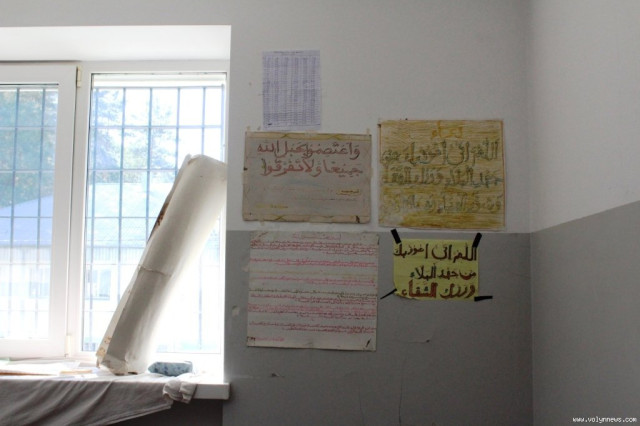 Окремо слід зауважити, що у корпусах є також кімнати релігійних обрядів, зокрема, для мусульман, а ще бібліотека. Тут, крім книг, є ще малюнки мешканців притулку і фігурки, які вони ліплять із хліба. Є у притулку навіть свого роду школа – це клас, у якому уже завтра почнуть навчатися троє нелегальних мігрантів. Їхнім учителем буде педагог однієї зі шкіл Ківерцівського району, якому допомагатиме перекладач.