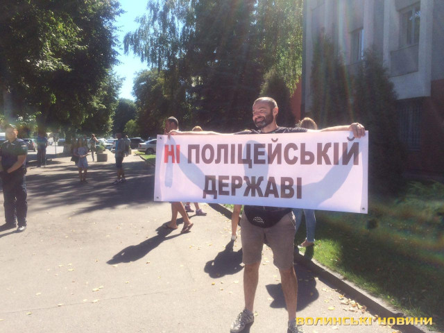 Мітинг на підтримку затриманого голови постійної поліцейської комісії Волині Олександра Тиводара відбувається у ці хвилини під стінами Управління СБУ в області.