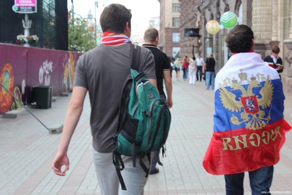 Один із російських шанувальників футболу приїхав сюди повболівати за Україну. Каже, що підтримуватиме команду Блохіна аж до фіналу.
